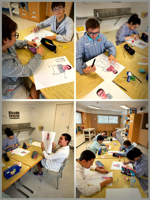 Avui hem anat a l'Aula de Plàstica per a dibuixar el nostre cos a partir de la imatge de la nostra cara. Els dibuixos han quedat genials!